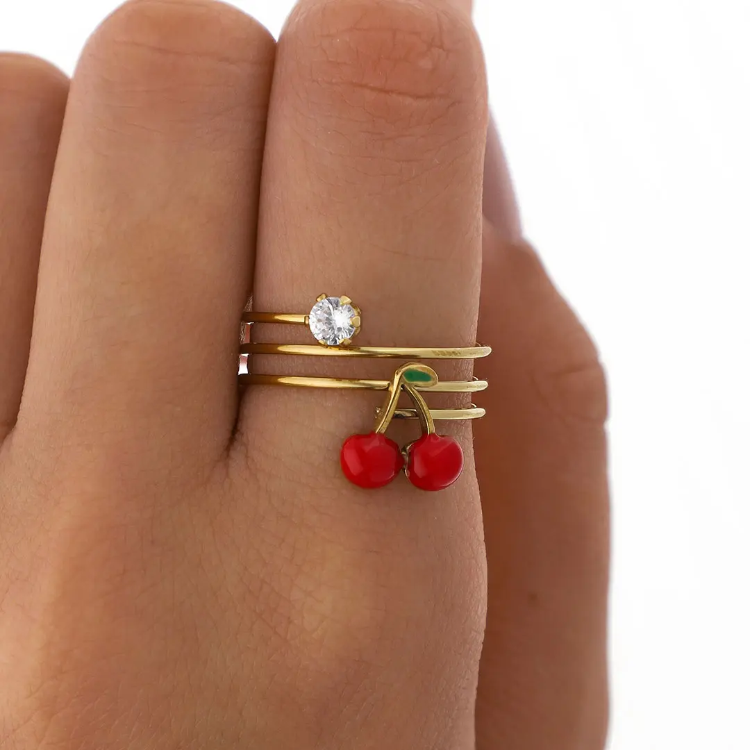 ANILLO CEREZA ACERO DORADO