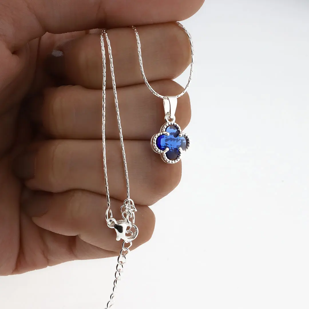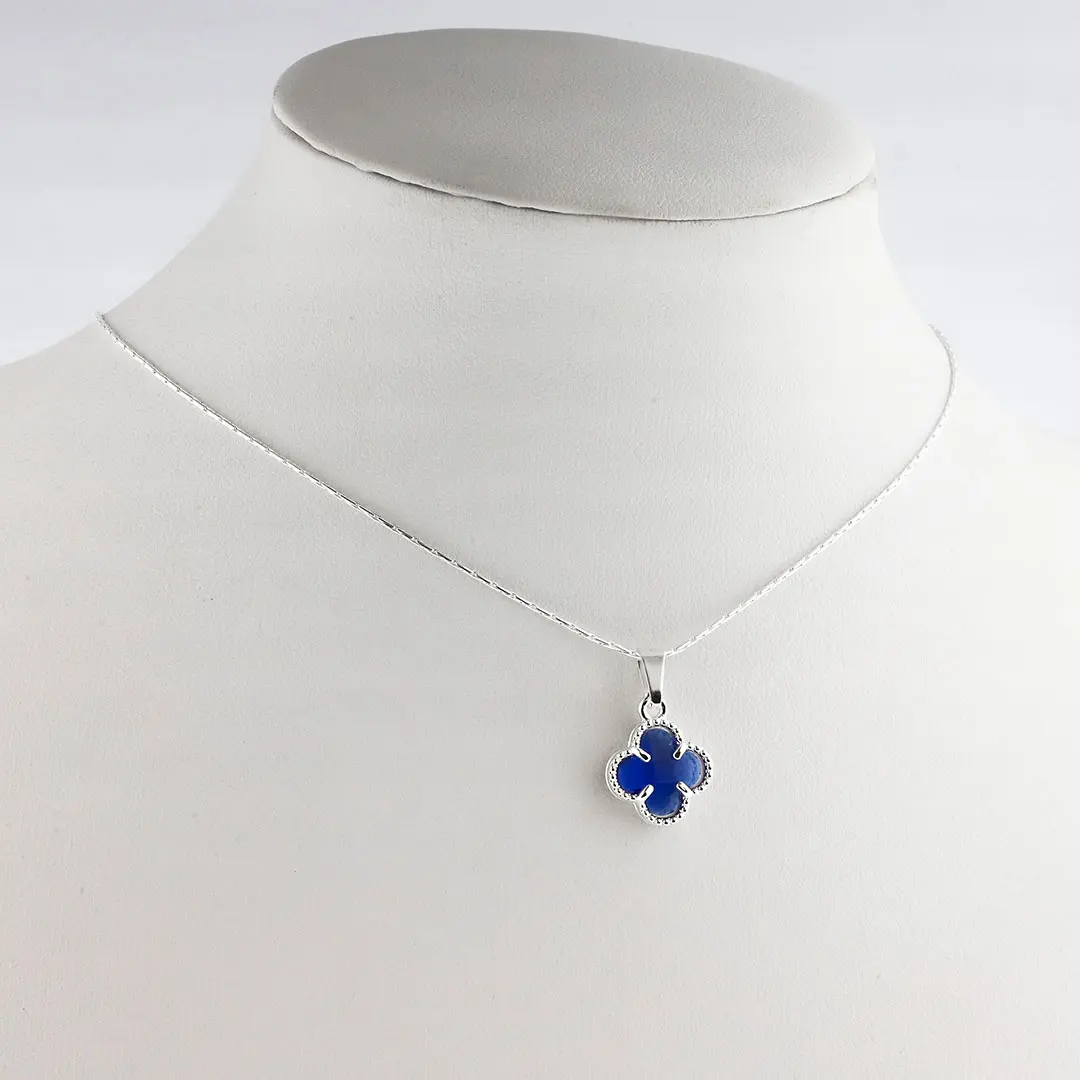 COLGANTE TREBOL AZUL ACERO BLANCO