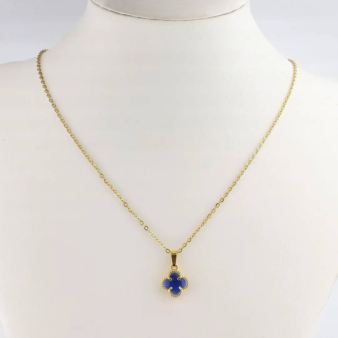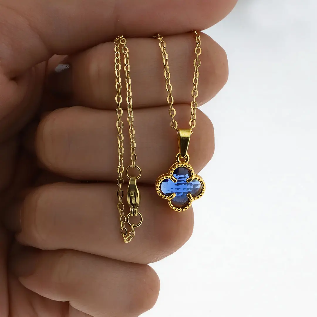 COLGANTE TREBOL AZUL ACERO DORADO